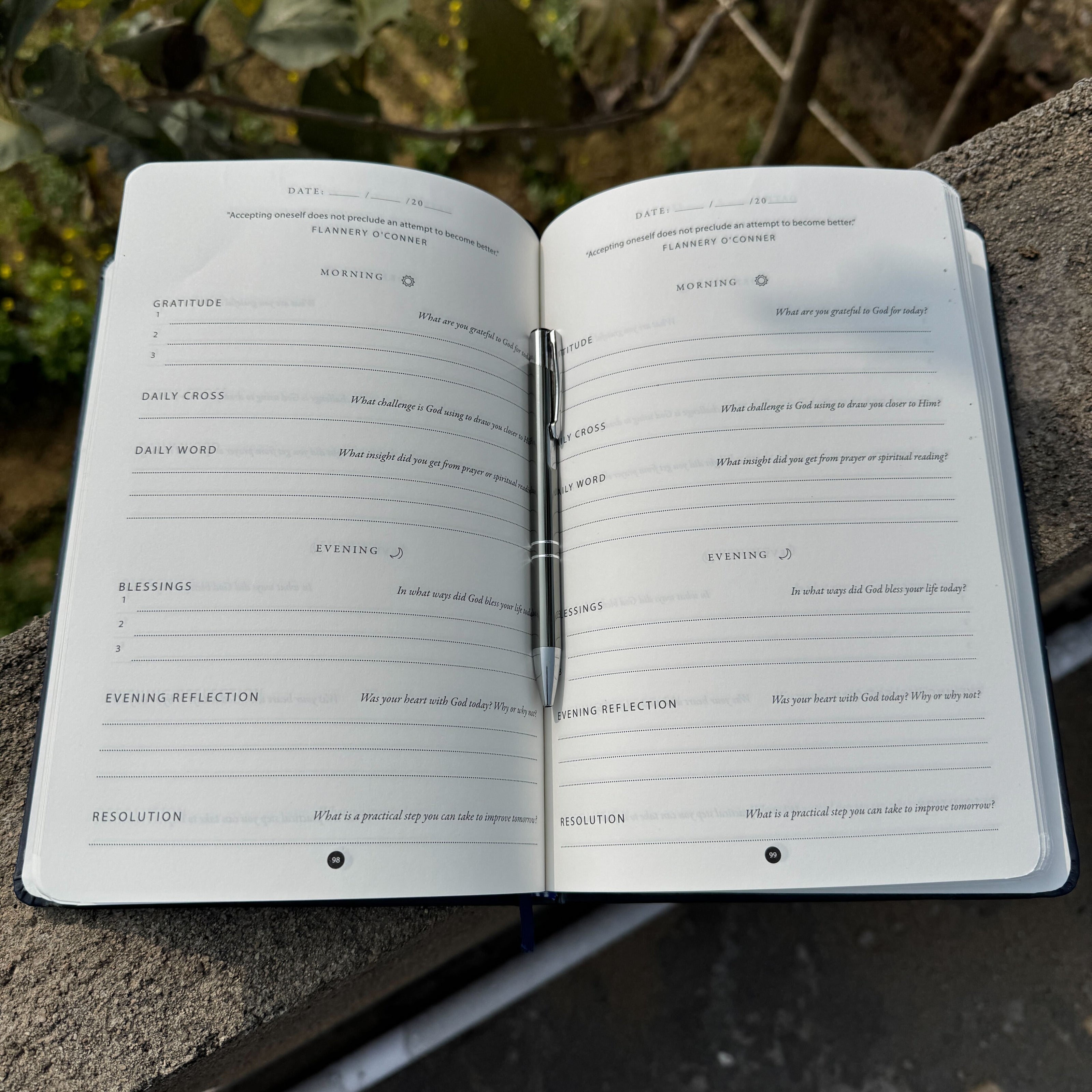Open the journal, write with intention, and reflect with prayer.