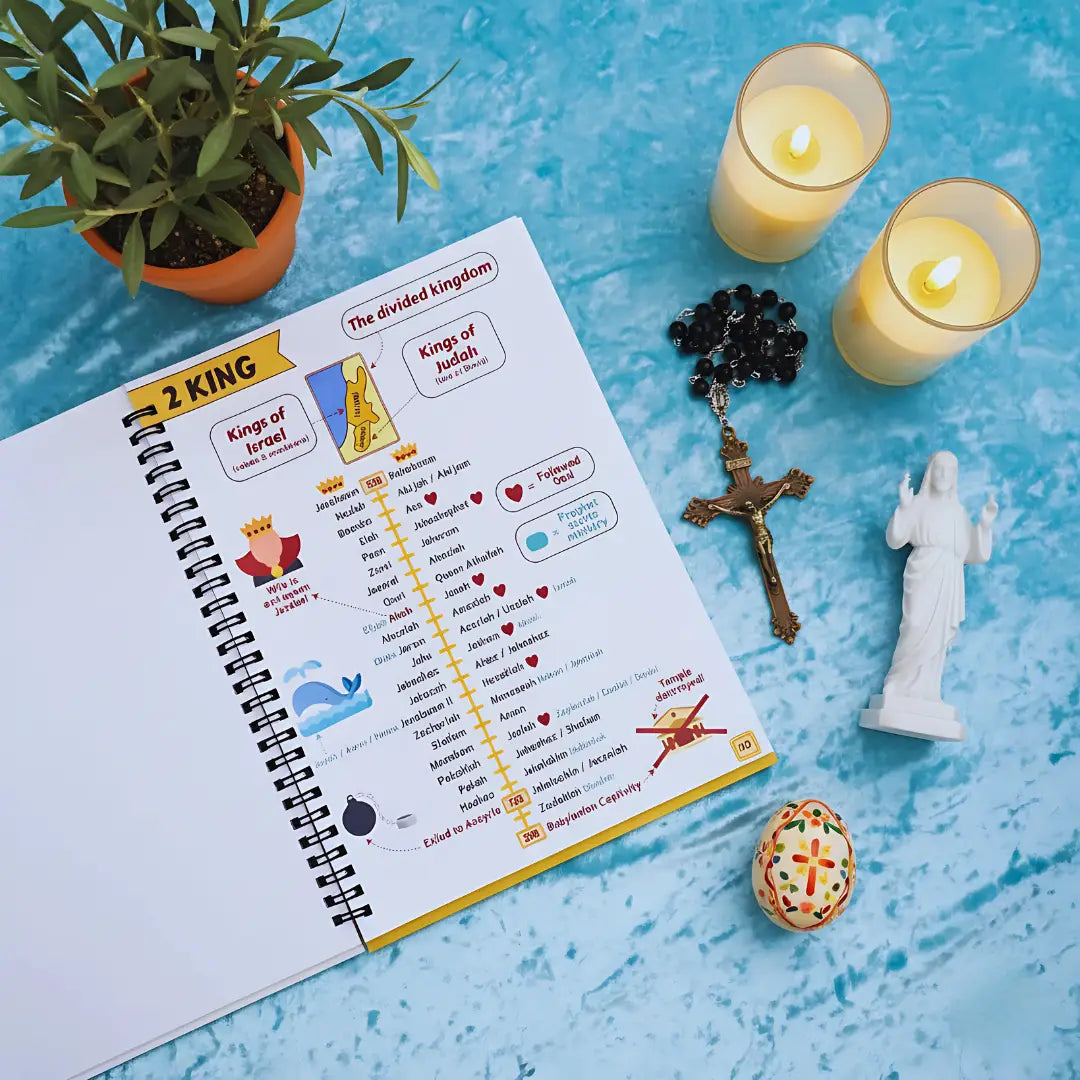 Every page is crafted to simplify scripture through visual storytelling, timelines, key takeaways, and reflection prompts — so you can actually connect with what you’re reading.