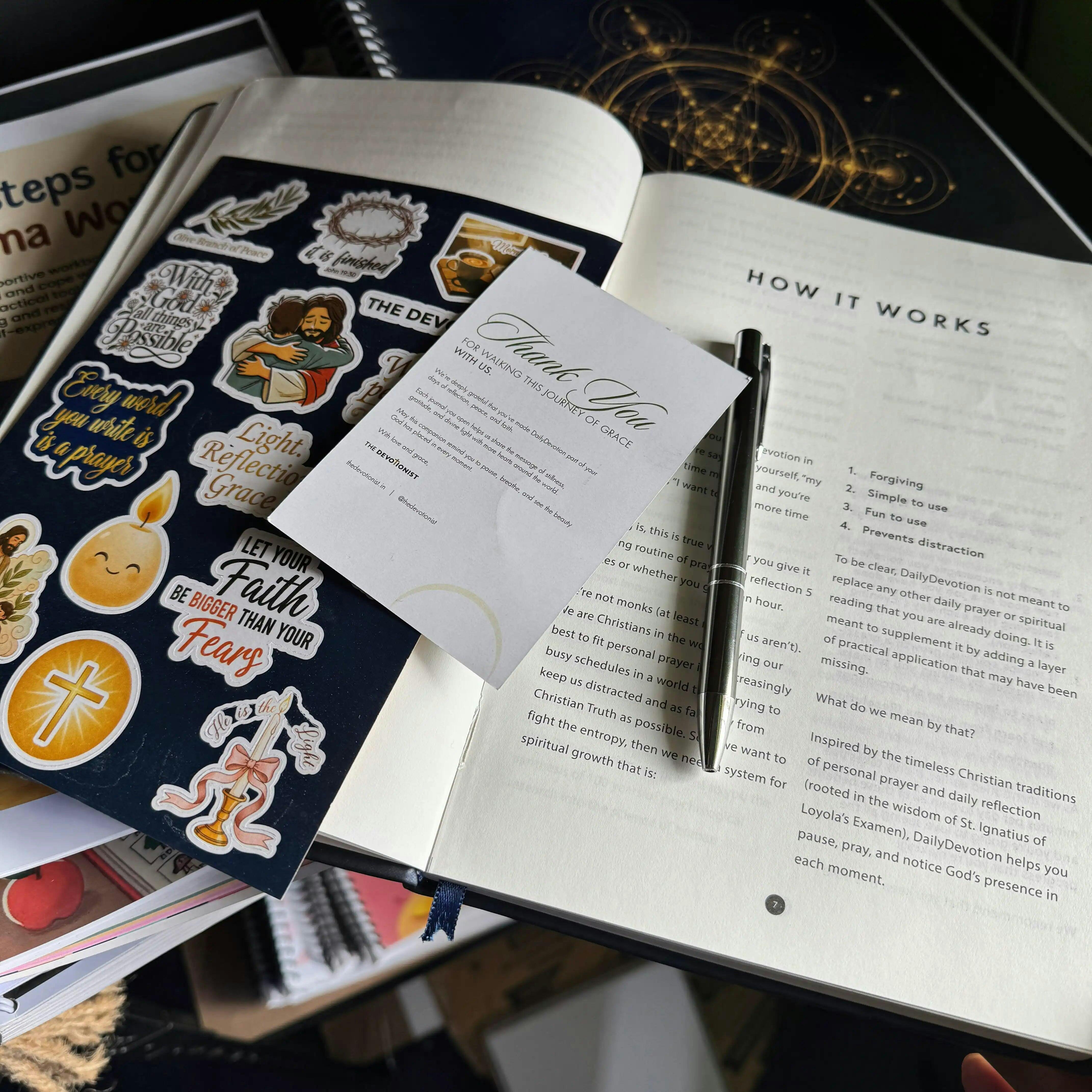 The Daily Devotion is guided, structured, and practice-based — created to be written in, reflected on, and returned to daily.